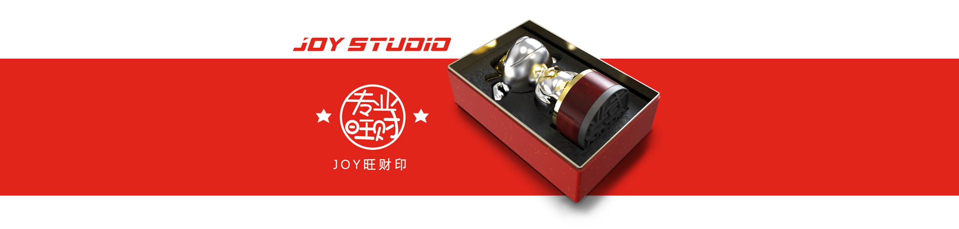 狗年鸿运,JOY送福;响应京东JOY线上衍生品推广宣传而设计的JOY狗年旺财印章、JOY蓝釉水杯、纪念JOY铜笔等系列礼盒产品。